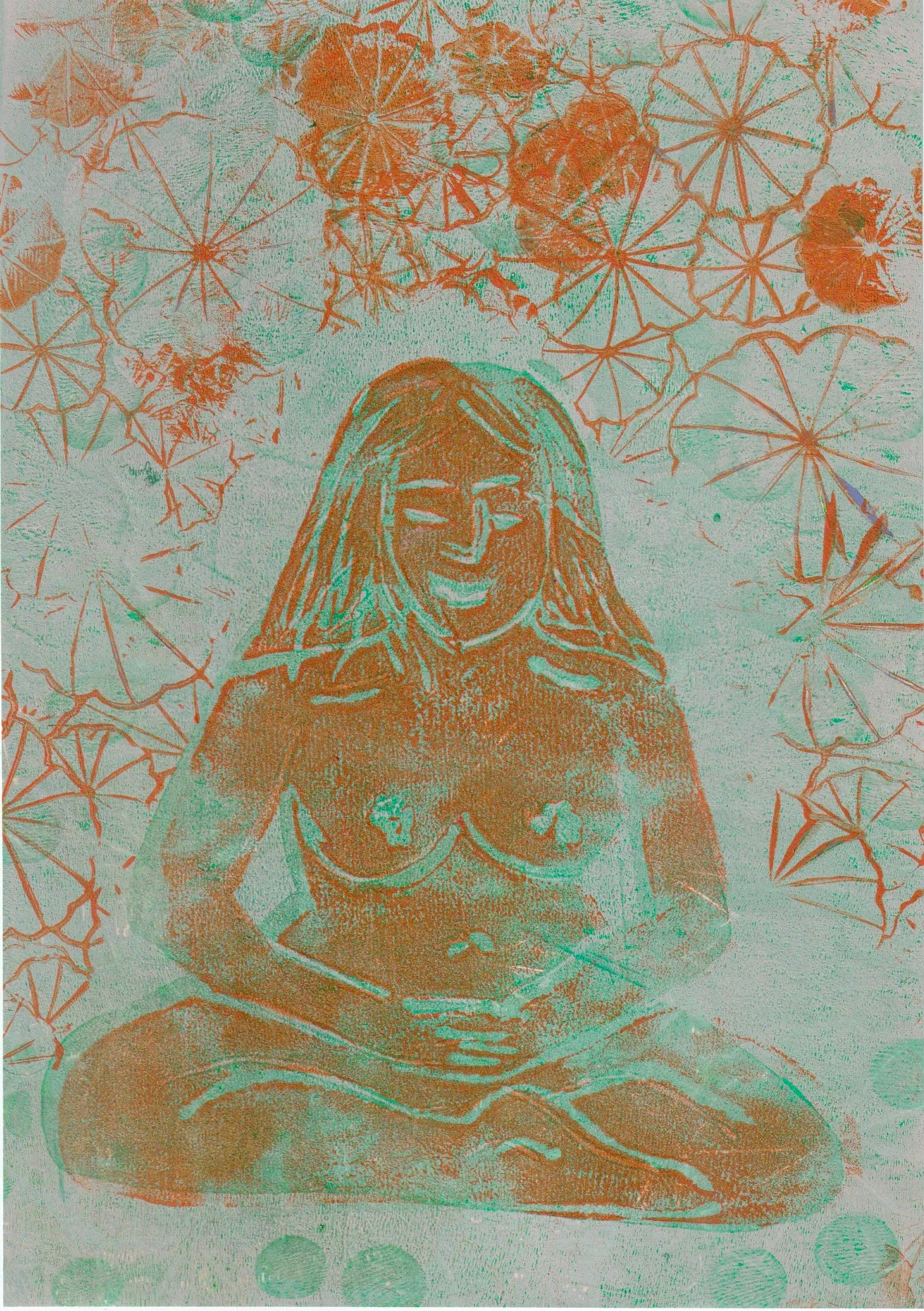 Meditierende-orange-gruen