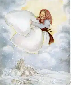 Babette Dieterich öffnet mit Handpan, Sansula und ihren Liedern einen weiten Klangraum, während Matthias Passagen aus dem Grimmschen Märchen Frau Holle rezitiert.